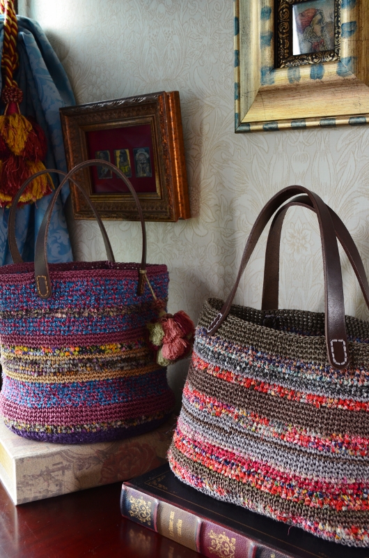 さて、ここで過去に編んだ裂き編みバッグ、登場!